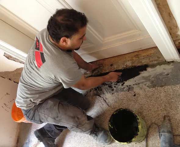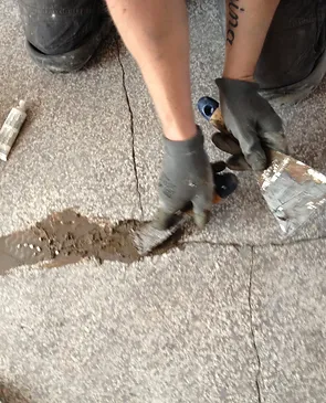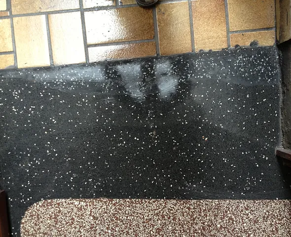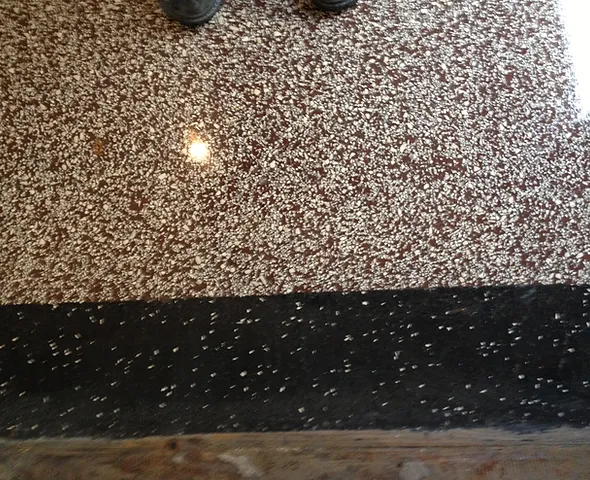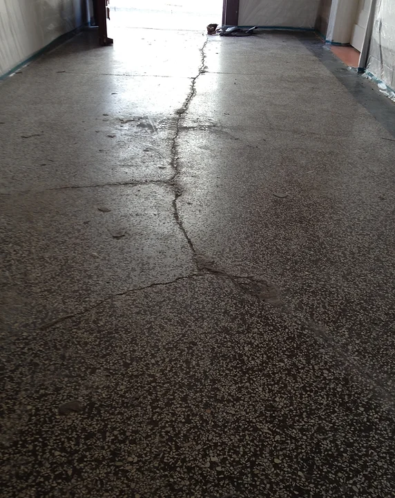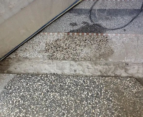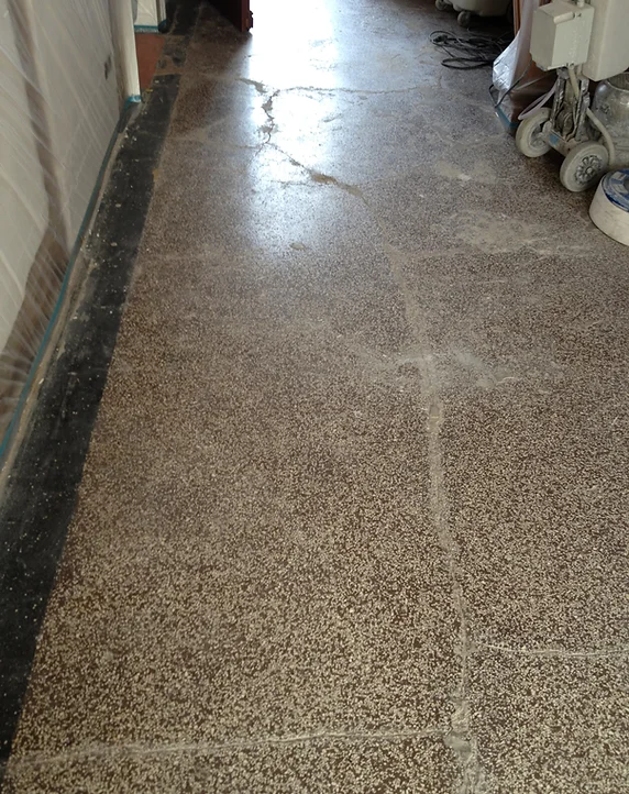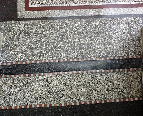 Risse im Terrazzoboden werden fachgerecht mit Zement und passendem Steinmaterial verschlossen. Anschließend verleihen wir dem Boden in mehreren Schleifgängen seinen charakteristischen Glanz zurück. Unsere Expertise garantiert eine Restaurierung, die den ursprünglichen Charme und die Qualität des Terrazzobodens erhält.